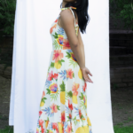 Tirantes delgados para ajuste de altura en hombros, silueta que resalta la cintura .